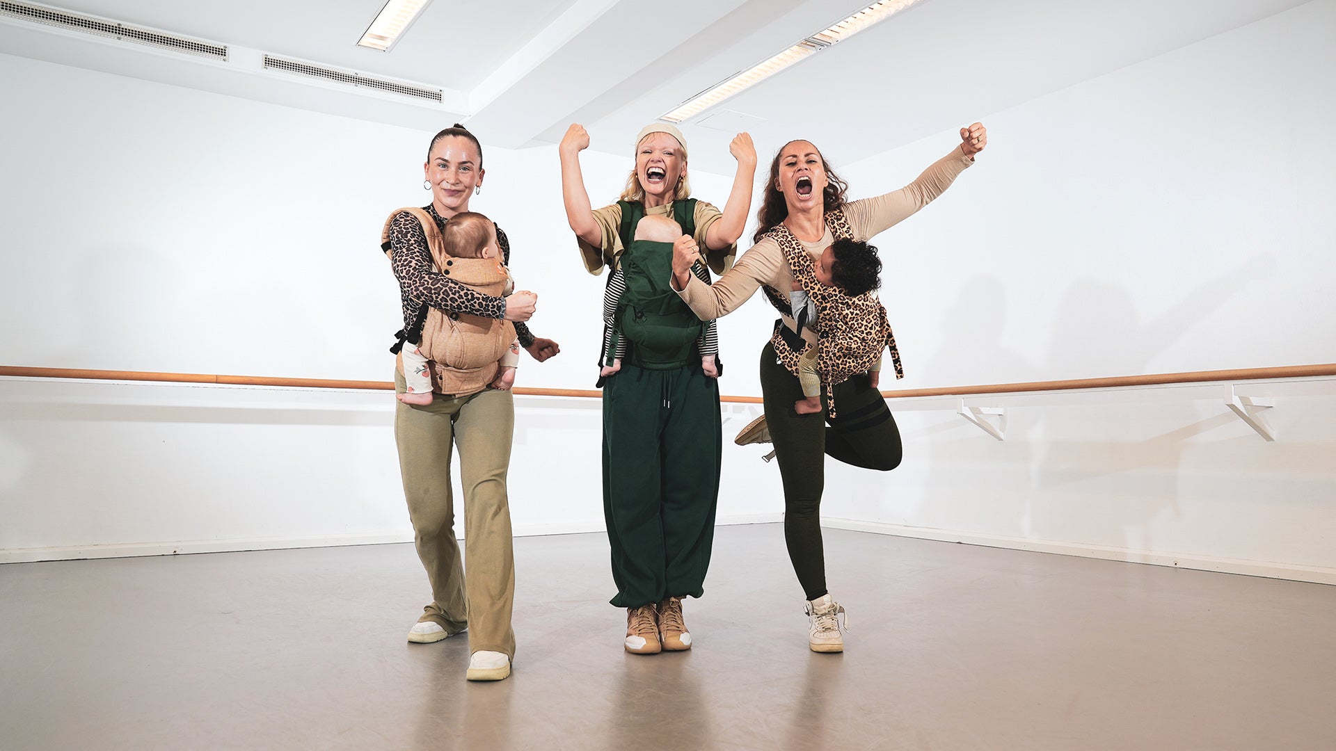 Maike shares this journey with both her family and a close-knit community of dancing moms. Many of them have been her friends for years, having toured together long before their children were born. Others found their way to Mom Jam through the babywearing dance workshops Maike has led over the years. Adding a special personal touch, her husband—a music producer—has composed the exclusive tracks for MomJam, featuring the sweet baby voices of their two kids.